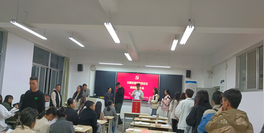 12月3日,边疆发展学院党总支召开党员大会进行党总支委员会换届选举。学院师生党员参加会议,会议由李国明同志主持。