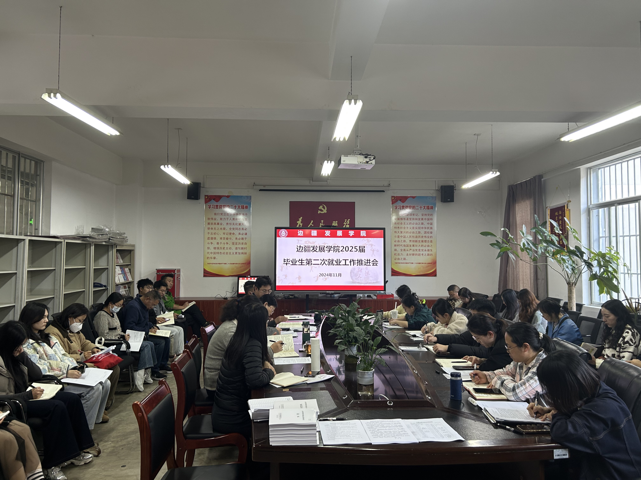 为持续推进学院2024届、2025届毕业生就业创业工作,充分调动学生就业积极性,近期,边疆发展学院召开2025届毕业生第二次就业创业工作推进会。